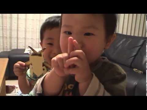 かな ねえ - 兄5歳、妹1歳。 妹は兄に服を合わせるのに懸命。 最後に兄は飽きて他へ行ってしまい、妹は怒って追いかけます。